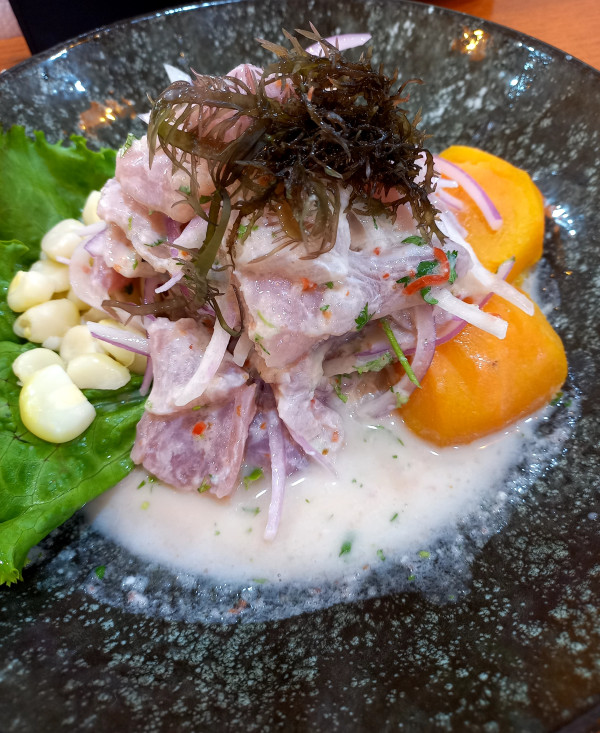 Pues ayer me comí un rico ceviche y causa de pollo.