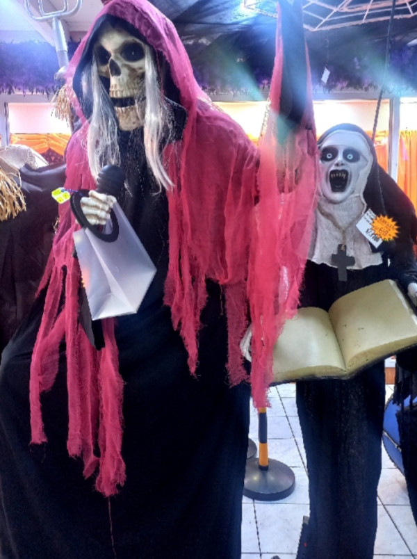 En mi foto se ve a la Muerte y al personaje de la Monja, decorada dentro de una tienda de dulces, me pareció una decoración muy real, sobretodo la de la muerte.