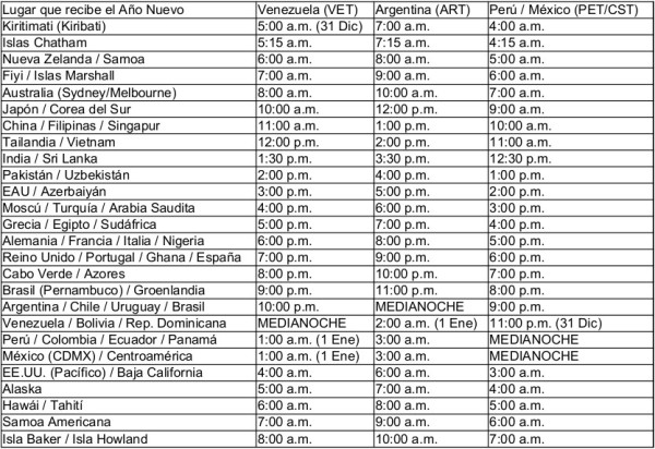 Horario de Año nuevo en otros países del mundo!...